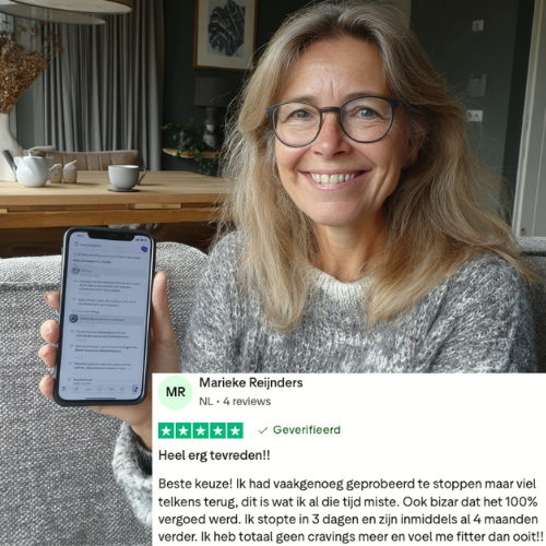 Wij kunnen met trots zeggen dat wij een gemiddelde beoordeling van een 9.3 hebben gekregen van onze 1.000+ deelnemers. Daarnaast is 89% gestopt in 5 dagen.